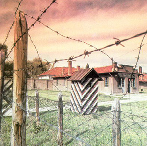 This complex occupies the surface area of 7 hectares and is surrounded by walls and barbed wire. It contains two central camp buildings, two supplementary one-storey buildings, two towers, two observation posts, two guard boxes, and a fountain. The central camp building consisted of premises in which inmates lived, premises to house guards, hearing premises, a dispensary, a barber’s room, and ten rooms for solitary confinement, with concrete floors, no windows, and a small slit on the top for light and ventilation.